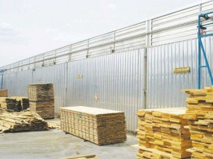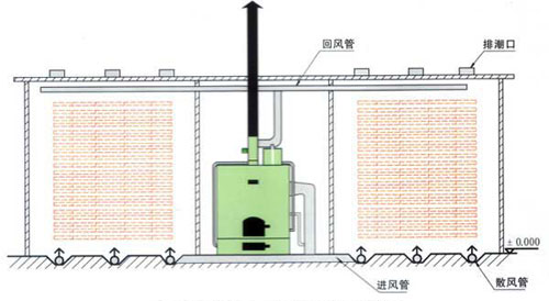 熱風(fēng)式烘干機(jī)工作原理是利用燃燒產(chǎn)生的熱能,加熱窯內(nèi)的空氣,由熱風(fēng)爐頂部主風(fēng)機(jī)將窯內(nèi)的空氣通過(guò)管道吸入爐體,將空氣加熱。再通過(guò)管道,送入窯內(nèi),由窯內(nèi)的循環(huán)風(fēng)機(jī)不斷的循環(huán)對(duì)窯內(nèi)的木材均勻加熱。木材烘干過(guò)程中如需要蒸汽,可由熱風(fēng)爐內(nèi)的蒸汽發(fā)生器提供,如果是一爐兩房時(shí),管道上裝有插閥,通過(guò)插閥的調(diào)節(jié)來(lái)控制窯內(nèi)的溫度。在烘干的過(guò)程中,由于木材要進(jìn)行排濕,在窯頂上留有排濕孔。