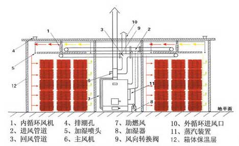 1.設(shè)備上配有蒸汽發(fā)生裝置(可產(chǎn)生大量的常壓蒸汽)、助氧風(fēng)閥、回風(fēng)閥、排潮系統(tǒng)等。二、RZH型磚混木材烘干機(jī)原理: